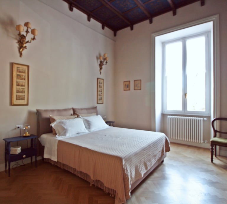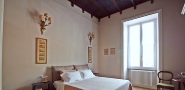 Suite luminosa e silenziosa in un palazzo nobiliare nel centro storico disposta su due livelli. Perfetta per una fuga romantica o una pausa di relax nella Città Eterna, immersi nell'atmosfera unica e nel fascino di un quartiere storico.